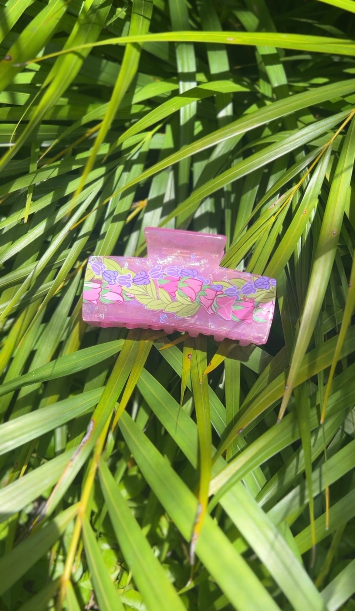 Indulge in luxury with our Luxe Hair Claw-Lokelani Maile Crown Flower. This premium hair clip is crafted from extra durable acetate (not acrylic) and features a dreamy holographic effect. Its twisted rosebud, crown flower, and Maile lei design add a touch of sophistication to any hairstyle.